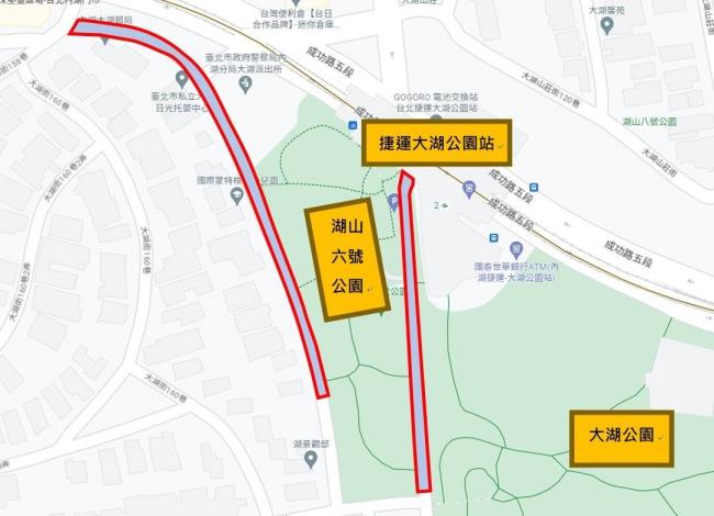養護隊第4分隊胡宗維分隊長說明,本路段緊鄰民眾住宅且為通行大湖公園地下停車場、捷運大湖公園站2號出入口的重要路段,因此轄區分隊在辦理施工前1週,要求施工單位於工區周邊張貼告示,並請當地里長協助宣導附近住戶了解施工資訊,以降低工程對於民眾之影響。