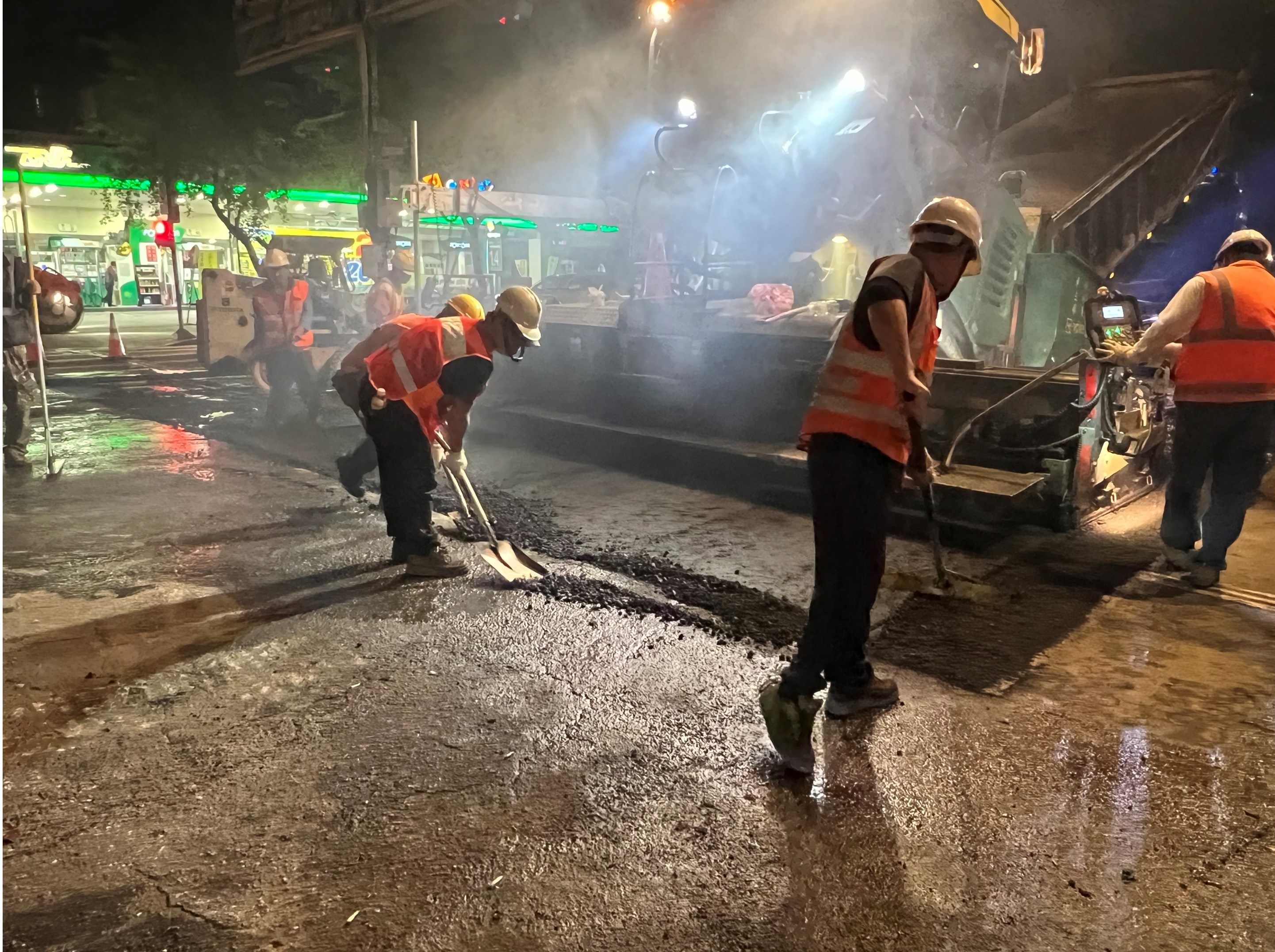 新工處養護工程隊第五分隊代理分隊長葉韋甫表示,本路段為8公尺以上道路,針對該路段大量的交通流量,轄區分隊於施工前會勘即已預期該工程可能對周遭各設施、人車出入造成影響,並於施工一週前張貼公告,請里長協助再次宣導施工時應注意事項。為避免造成上班時間交通堵車情形,施工廠商決定於半夜時段施工,以便將施工期間對用路人之衝擊降至最低,各管線單位也於更新前評估是否有修埋管需求,俟確認已無須改善項目後,才由轄區分隊進場施作,各公司行號、管線單位與轄區分隊的相互配合,不僅讓用路環境更優質友善,更增進人民對政府的信心與期待。