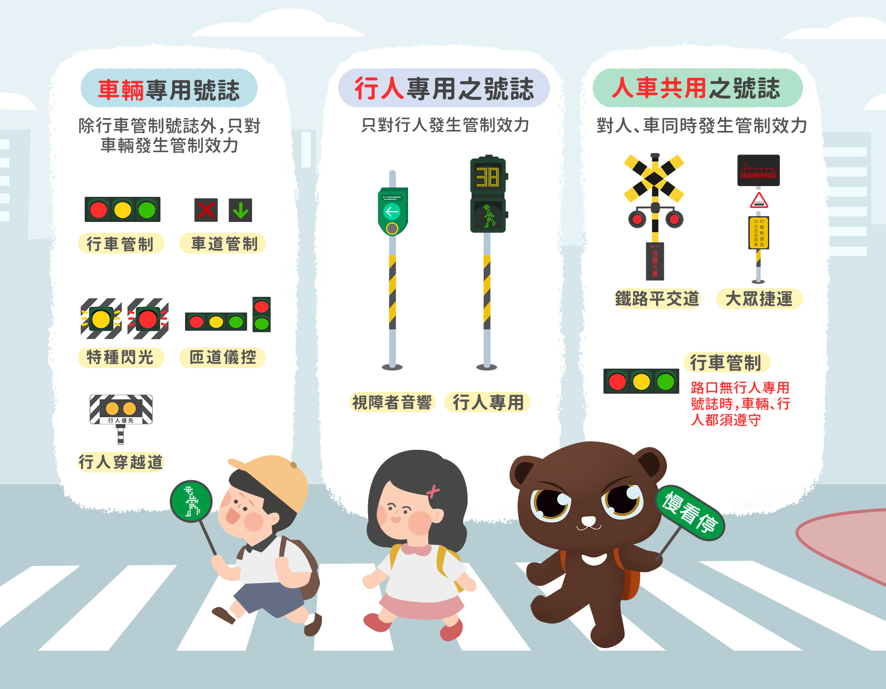 ■ 交安教育:從學校教育做起,將「行人優先、停讓文化」列為課程重點主軸,推廣「以人為本」的交通安全觀念。