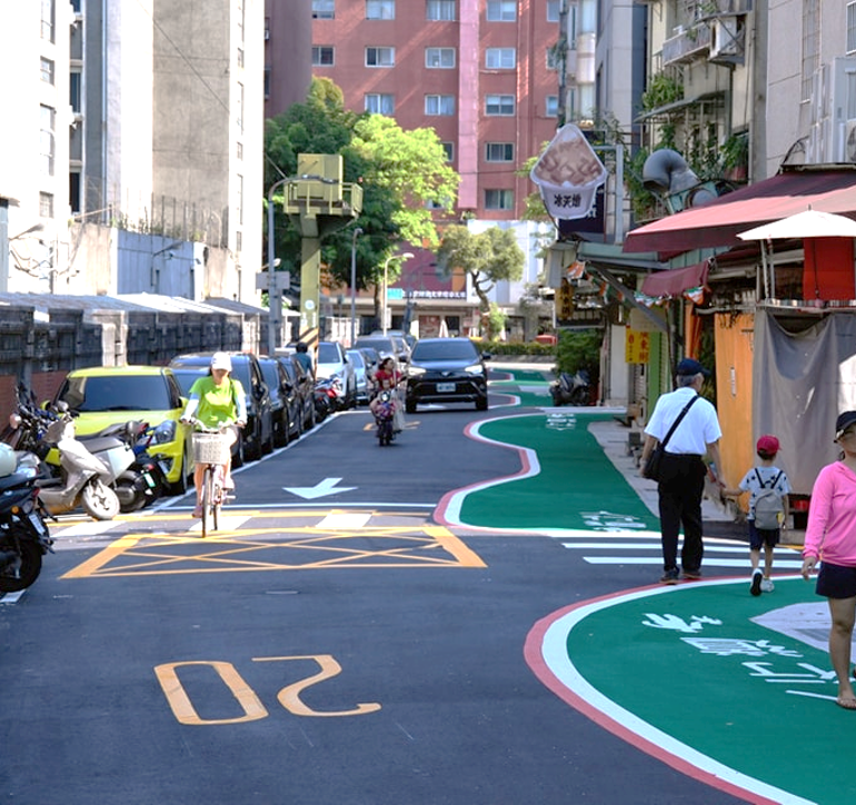 在這些初步工程完成後,經過現場實測,龍泉街汽車車速相較實施前下降25%(實施後19.17kph),機車車速下降32%(實施後21.22kph),有效地達到車輛減速的效果。龍泉里內,後續還有其他的地點已規劃了行人友善區相關設施,除了標線型人行道、組裝式減速丘、入口意象,也於龍泉街的部分路段規劃有車道鋪面顏色調整等減速作法,後續交通局將與里辦公處一起觀察成果,陸續施作里內其他地點,以建構行人友善區。
