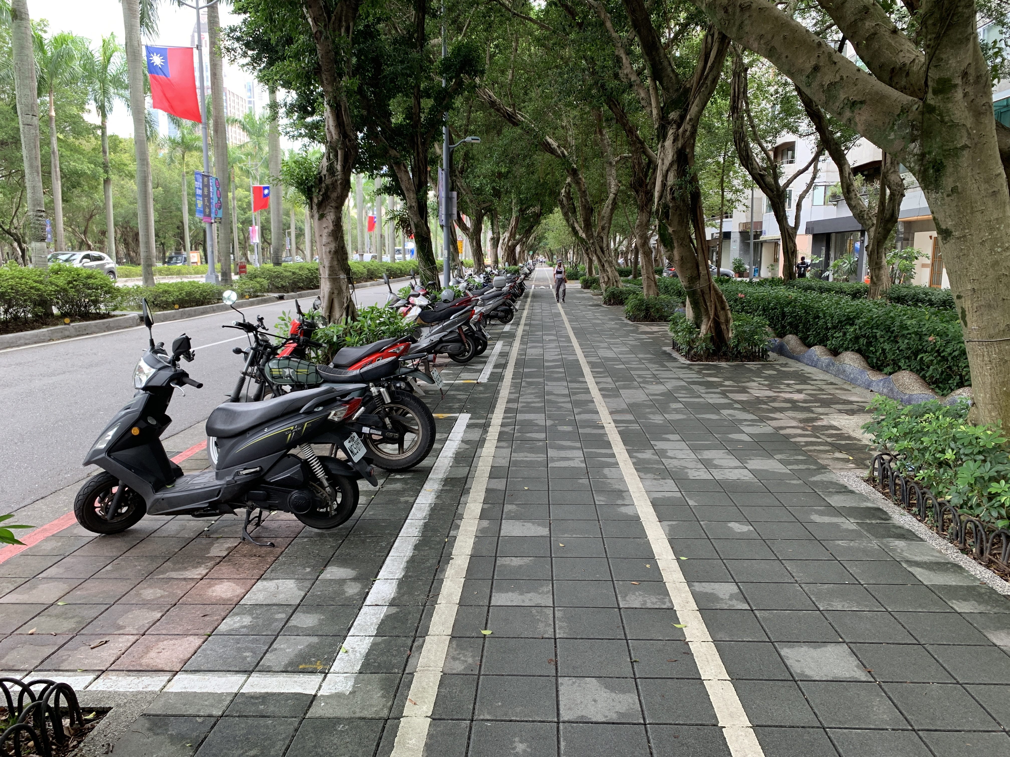 機車停放於人行道機慢車停放區,人車動線交織