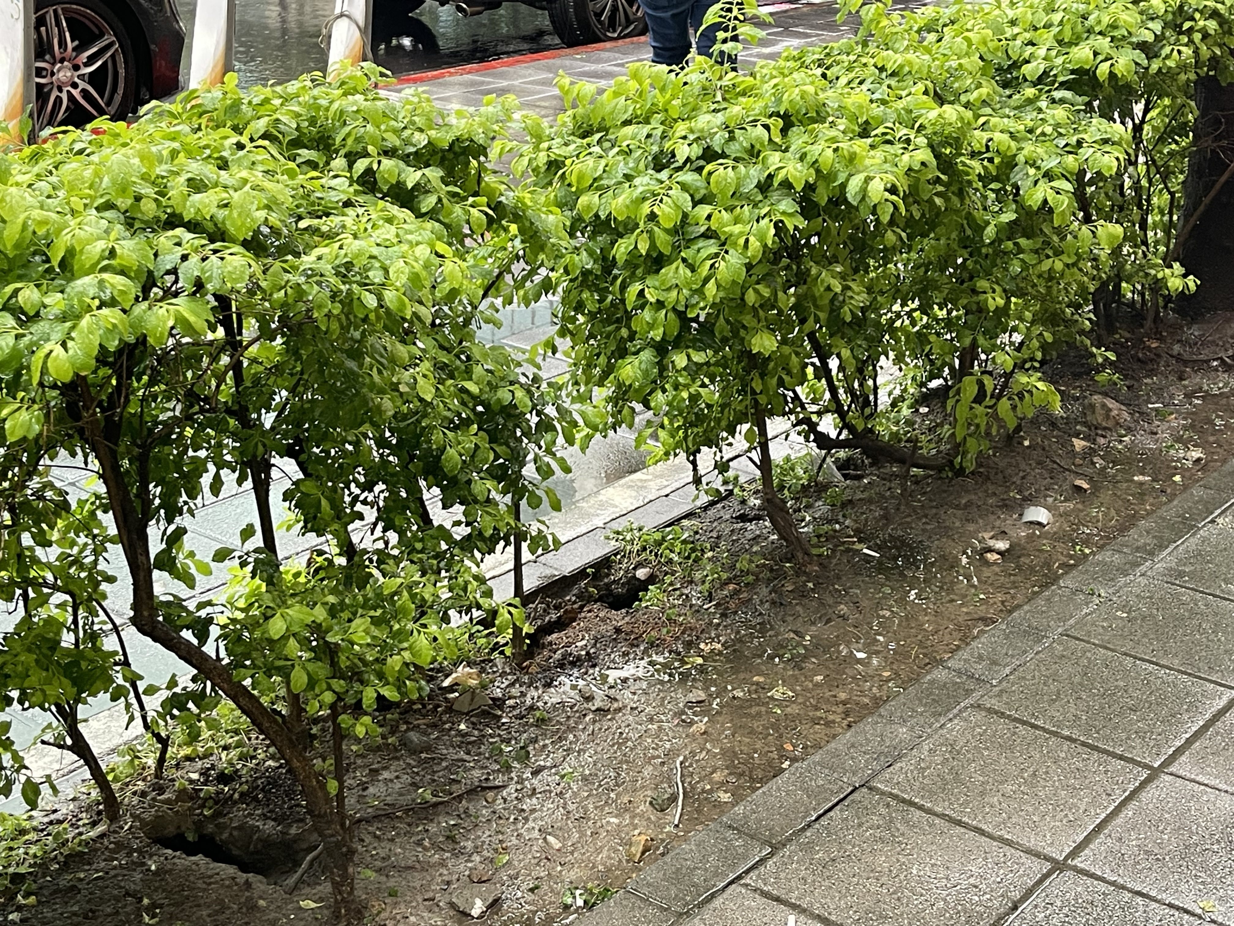 松山區南京東路三段272號人行道改善前:土壤流失造成路面高低差