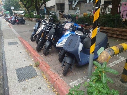 延平南路西側人行道(中華路2段39巷至廣州街)人行道設置機車停放區,機車騎上人行道,影響人行空間