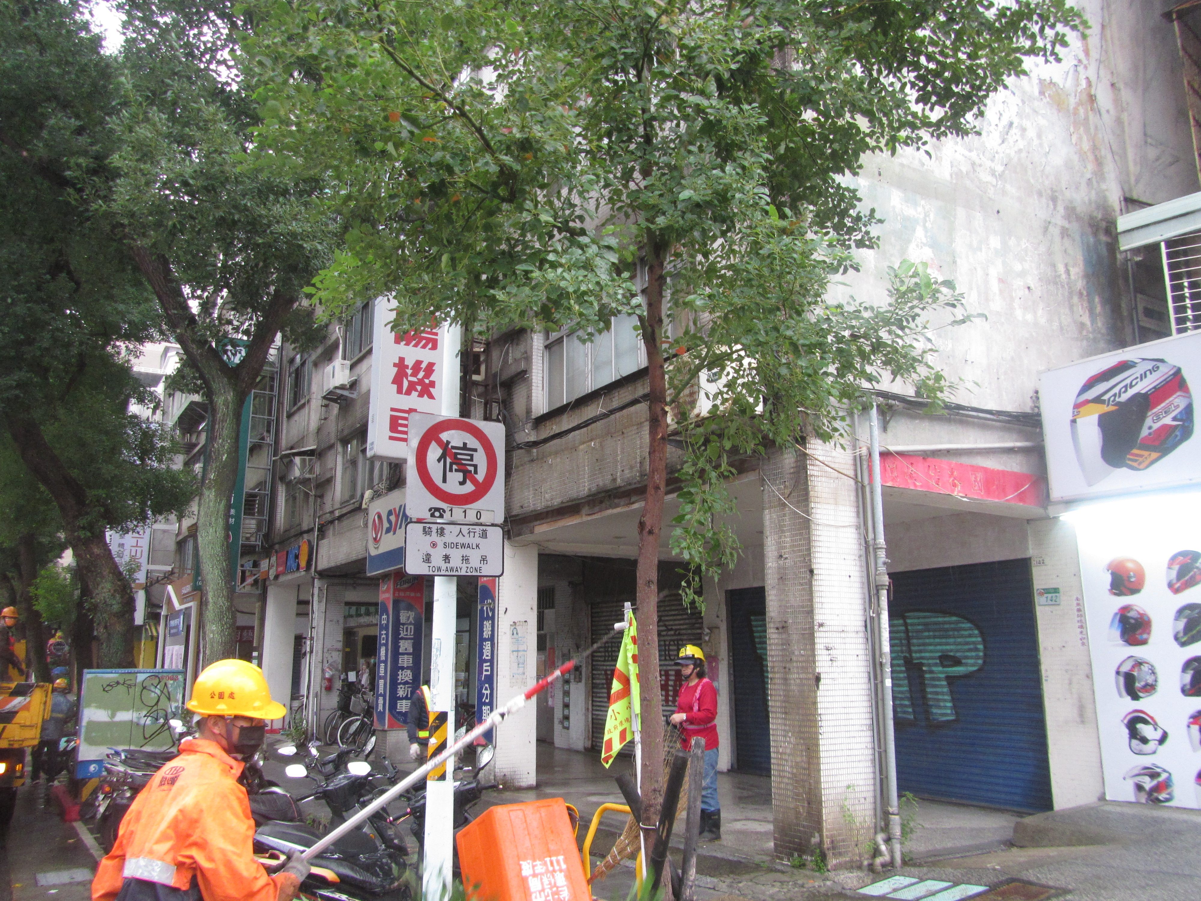 和平西路一段142號改善前:行道樹植栽遮擋路牌