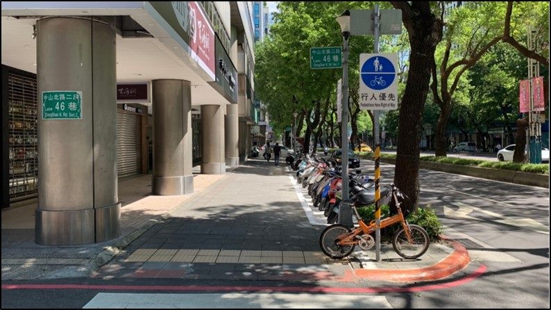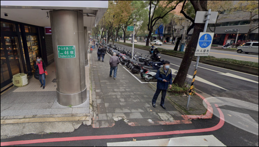 機車停放於路側機車停車彎,人車動線分離