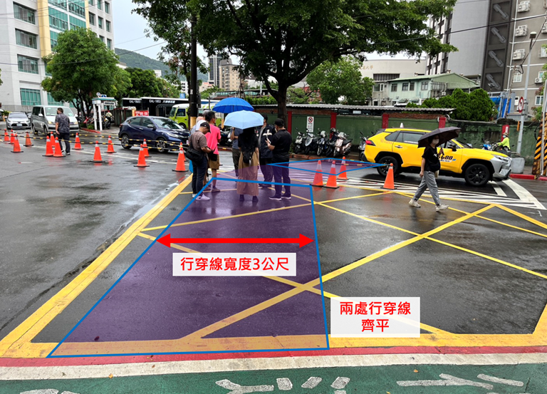 增設實體分隔人行道及劃設行穿線後