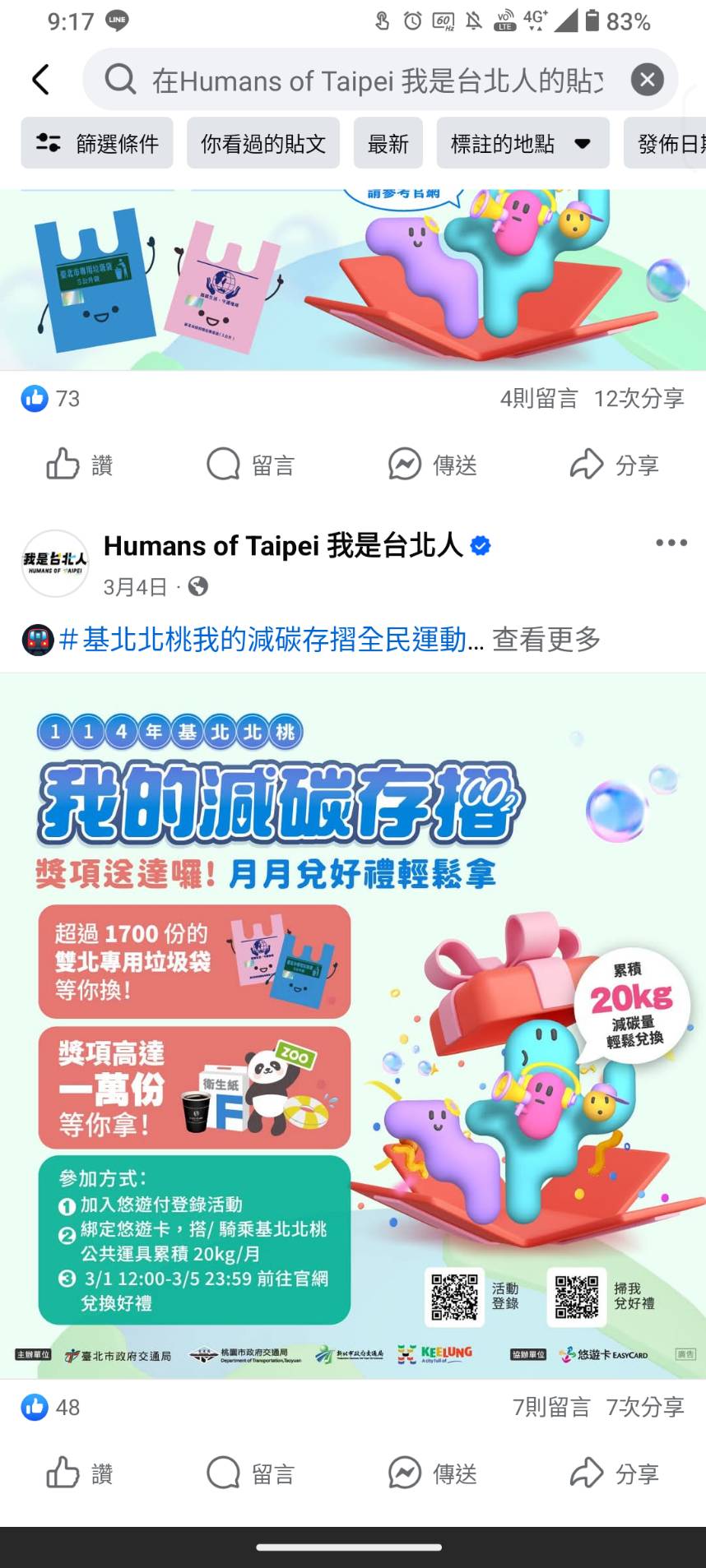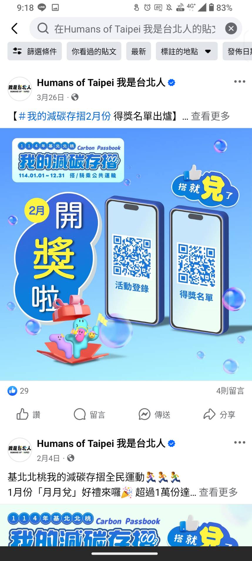 我是台北人FB發布 - 0326我的減碳存摺2月份 得獎名單出爐 -