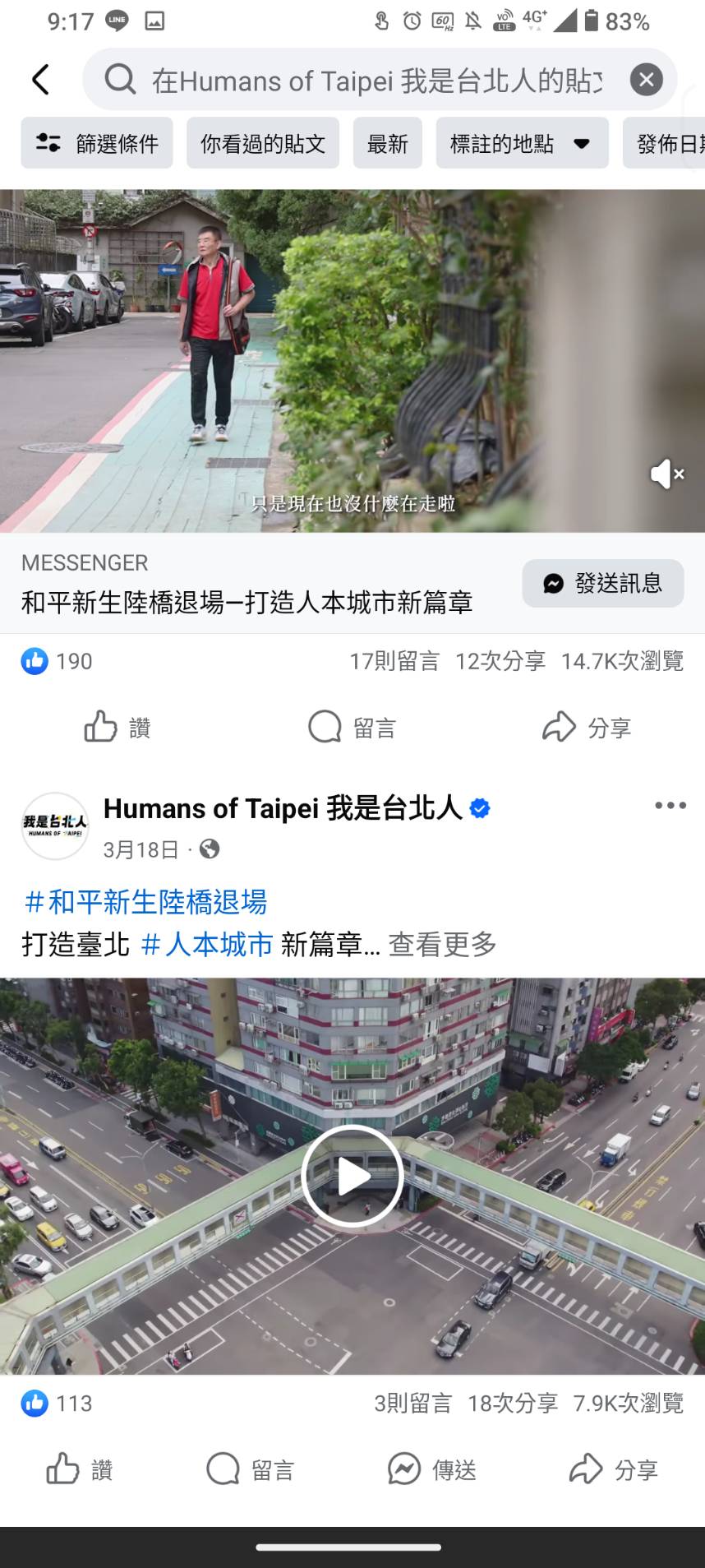 市府LINE官方帳號發布 - 0318 和平新生陸橋影片 -