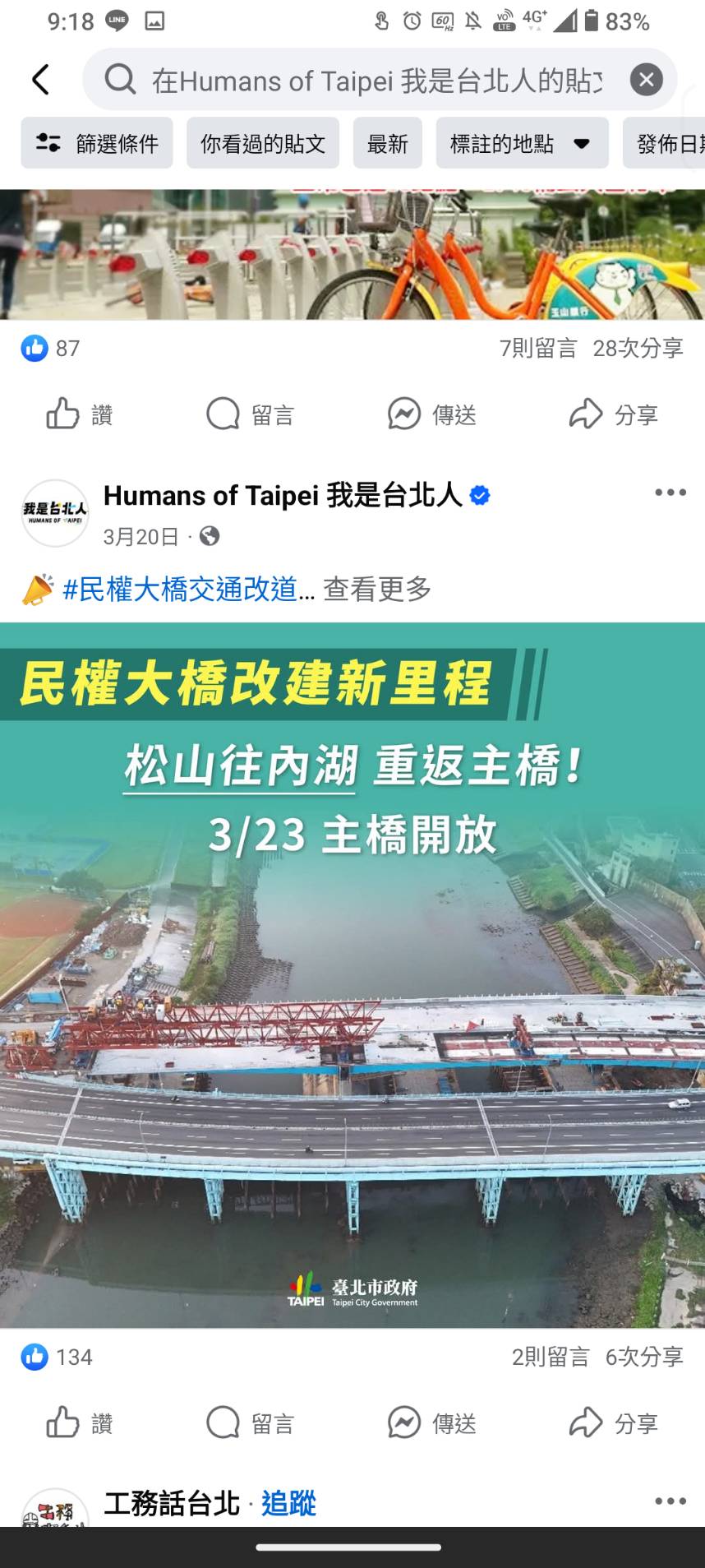 市府LINE官方帳號發布 - 0307 中正橋改建工作 -