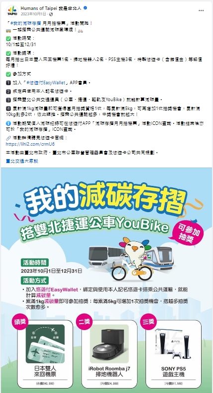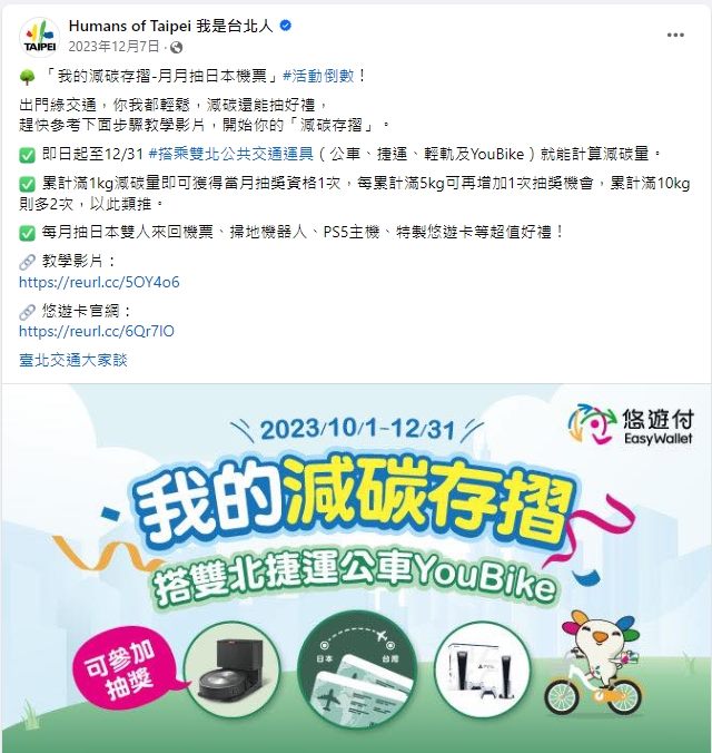 我是台北人FB發布 - 我的減碳存摺月月抽日本機票1 -