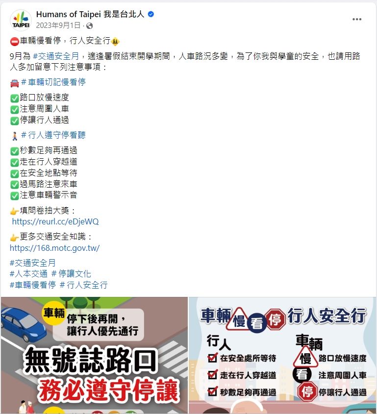 我是台北人FB發布 - 車輛慢看停 行人安全行 -