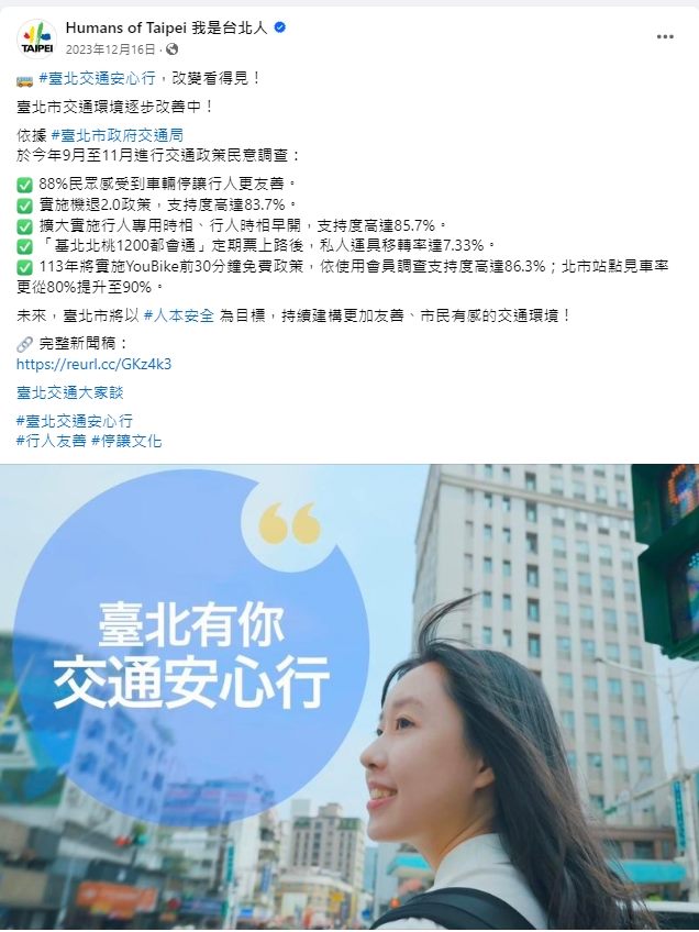 我是台北人FB發布 - 臺北交通安心行 改變看得見 -