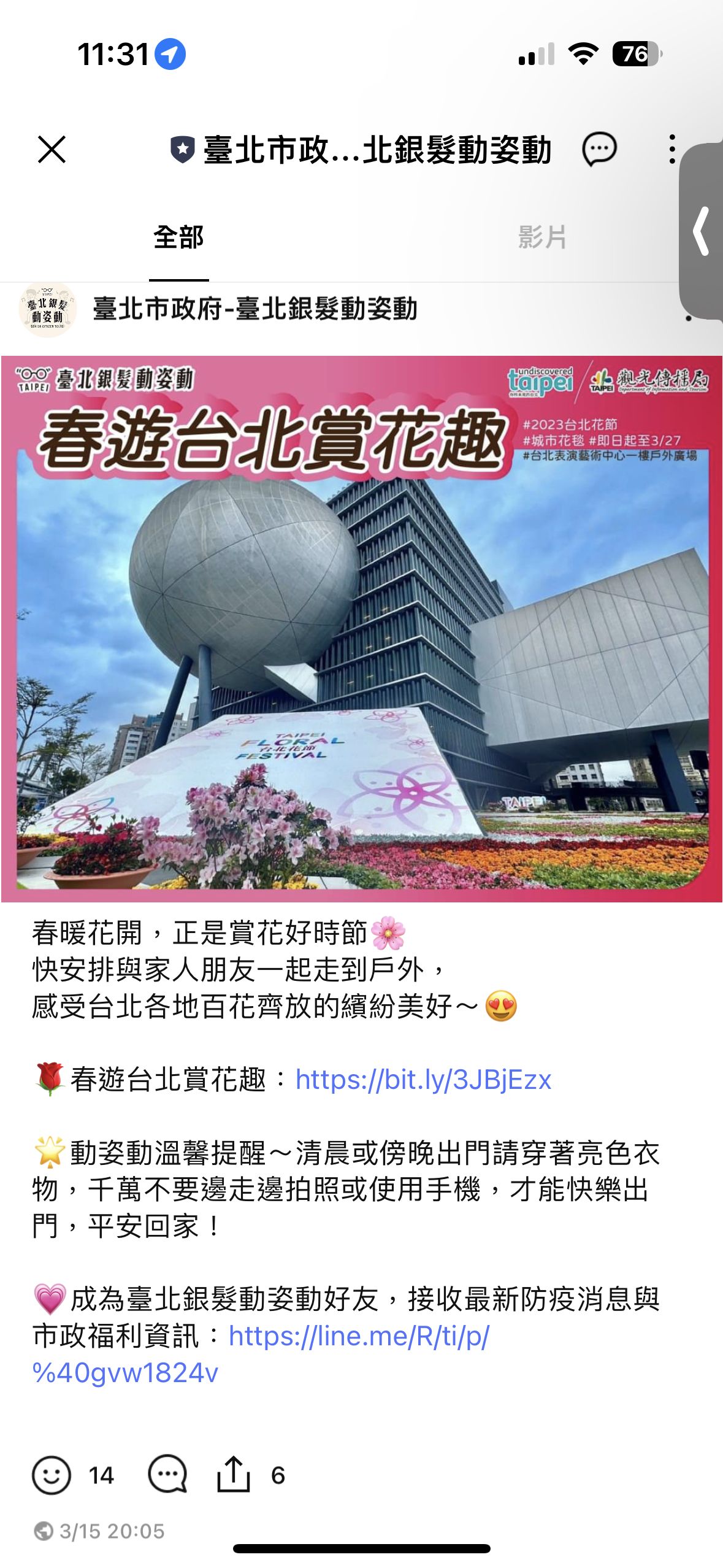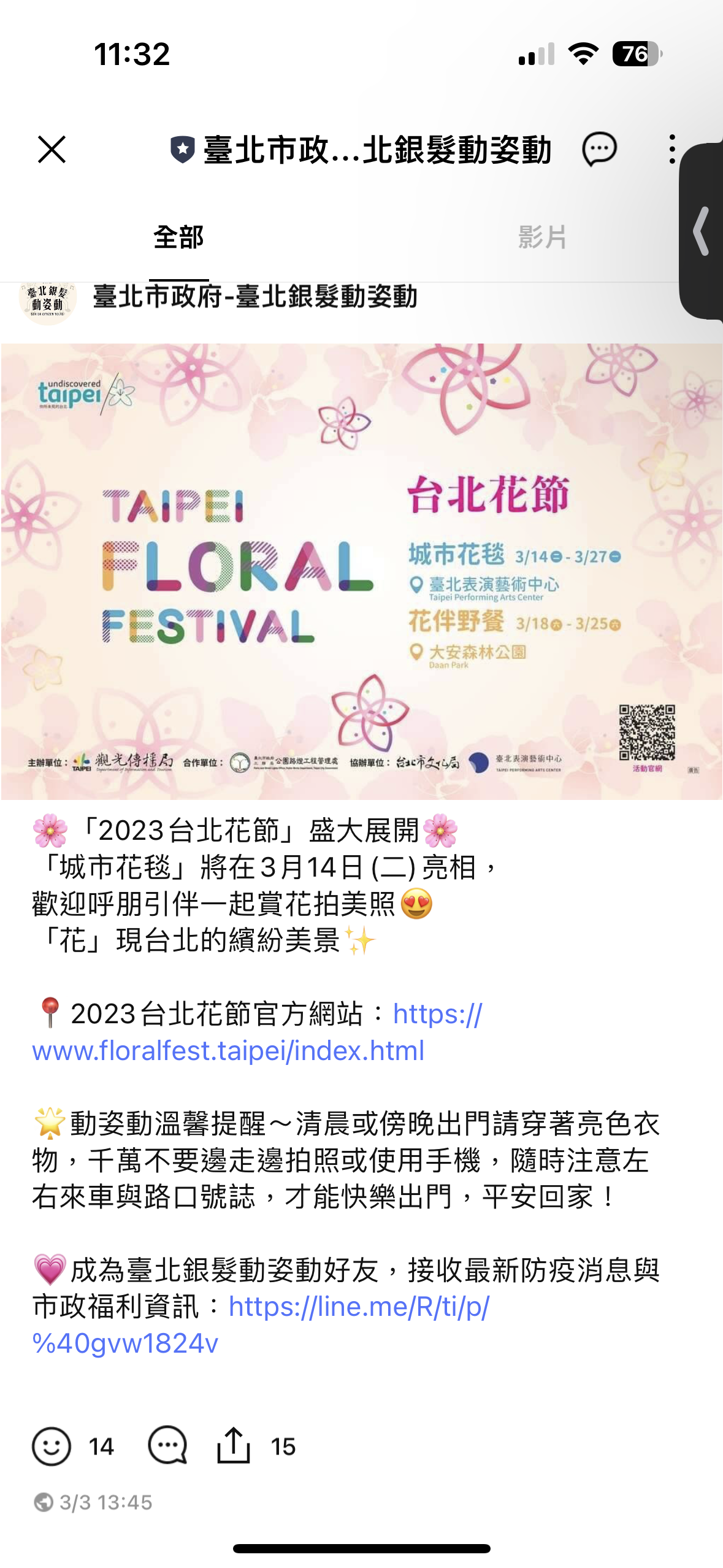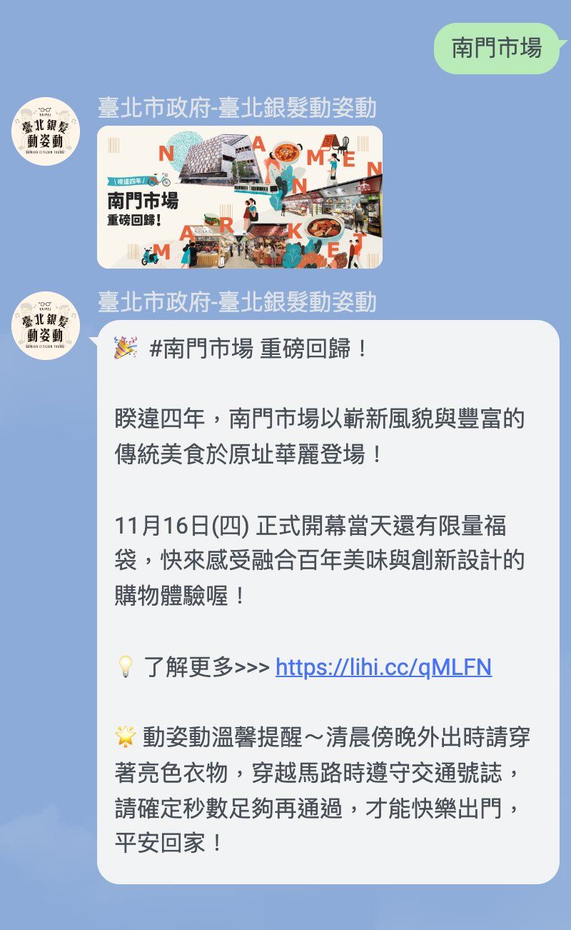 臺北銀髮動姿動LINE帳號發布 - 宣傳資訊14 -
