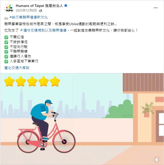 我是台北人FB發布 - 自行車騎乘禮儀新文化 -