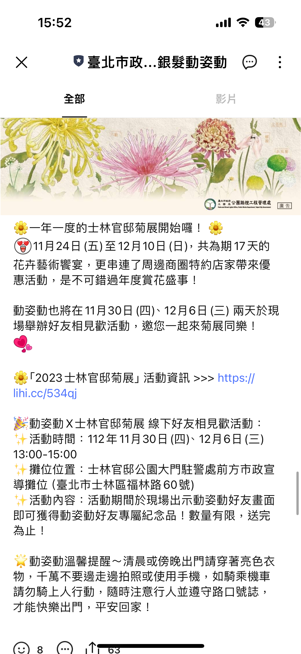 臺北銀髮動姿動LINE帳號發布 - 宣傳資訊8 -